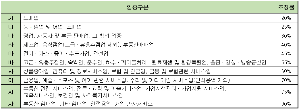 근로장려금 산정 시 사업소득 업종별 조정률
