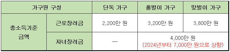(2) 근로장려금 기준 - 소득여건